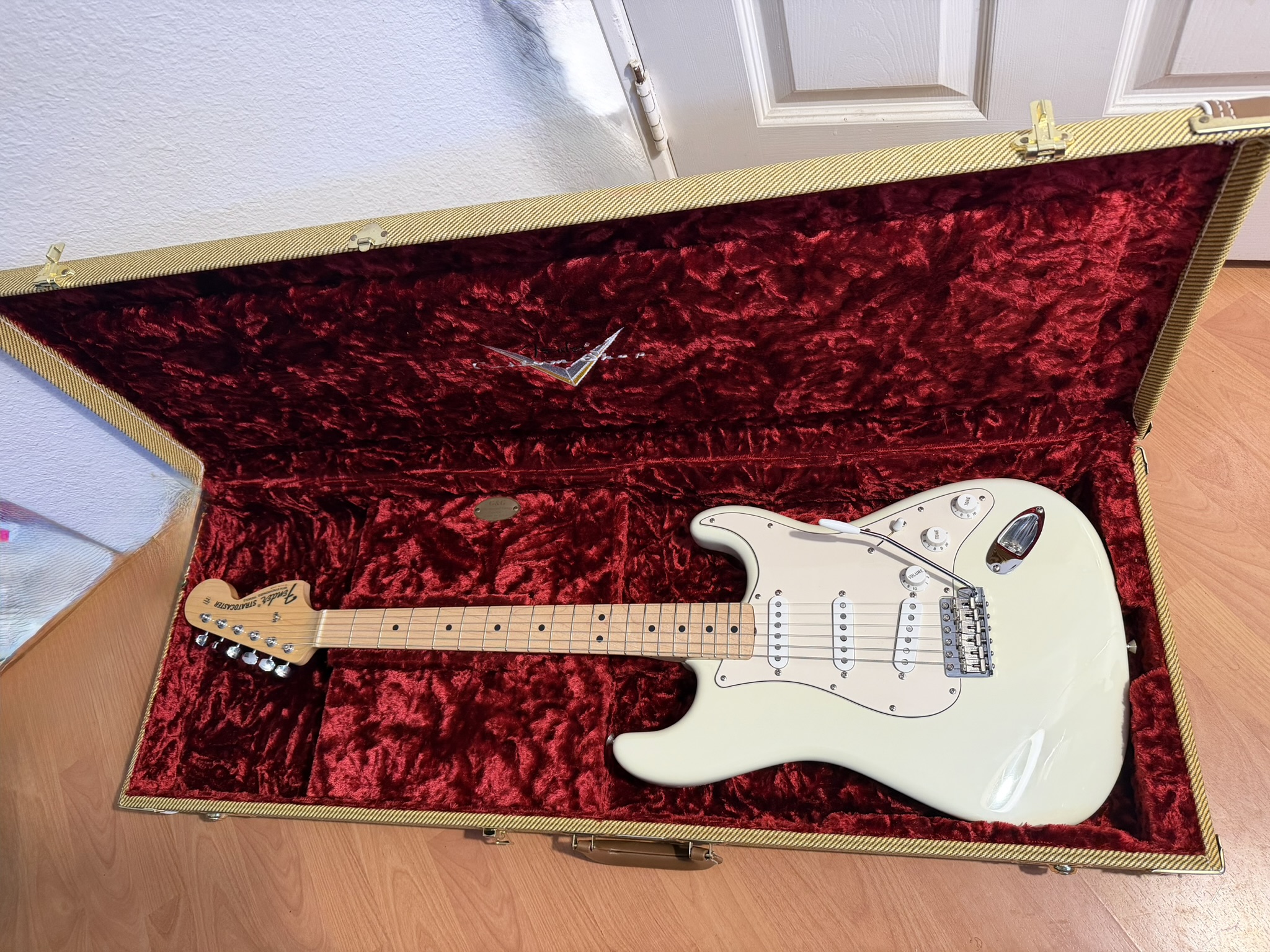 <p style="margin: 0px 0px 1.5em; padding: 0px; line-height: 1.6; word-break: break-word; color: rgb(33, 33, 33); font-family: Inter, system-ui, -apple-system, BlinkMacSystemFont, "Segoe UI", Roboto, Helvetica, Arial, sans-serif, "Apple Color Emoji", "Segoe UI Emoji", "Segoe UI Symbol"; font-size: 16px; letter-spacing: -0.16px;"> <b><strong>Collector’s Grade 1969 Fender Custom Shop Stratocaster (2005)</strong></b></p> <p style="margin: 0px 0px 1.5em; padding: 0px; line-height: 1.6; word-break: break-word; color: rgb(33, 33, 33); font-family: Inter, system-ui, -apple-system, BlinkMacSystemFont, "Segoe UI", Roboto, Helvetica, Arial, sans-serif, "Apple Color Emoji", "Segoe UI Emoji", "Segoe UI Symbol"; font-size: 16px; letter-spacing: -0.16px;"> This is a collector-grade 1969 Fender Custom Shop Stratocaster built in 2005. I acquired this guitar from a private collector who was a non-player, and it has been exceptionally well cared for. One would think this guitar was made this year, not 20+ years ago.</p> <p style="margin: 0px 0px 1.5em; padding: 0px; line-height: 1.6; word-break: break-word; color: rgb(33, 33, 33); font-family: Inter, system-ui, -apple-system, BlinkMacSystemFont, "Segoe UI", Roboto, Helvetica, Arial, sans-serif, "Apple Color Emoji", "Segoe UI Emoji", "Segoe UI Symbol"; font-size: 16px; letter-spacing: -0.16px;"> This instrument was produced as a <b><strong>one-to-one replica of the 1969 Stratocaster famously played by Jimi Hendrix at Woodstock</strong></b>, capturing the period-correct specifications, look, and feel that define this iconic guitar.</p> <p style="margin: 0px 0px 1.5em; padding: 0px; line-height: 1.6; word-break: break-word; color: rgb(33, 33, 33); font-family: Inter, system-ui, -apple-system, BlinkMacSystemFont, "Segoe UI", Roboto, Helvetica, Arial, sans-serif, "Apple Color Emoji", "Segoe UI Emoji", "Segoe UI Symbol"; font-size: 16px; letter-spacing: -0.16px;"> Time Machine Series</p> <ul style="list-style: none; margin: 0px 3em 1.5em; padding-right: 0px; padding-left: 0px; color: rgb(33, 33, 33); font-family: Inter, system-ui, -apple-system, BlinkMacSystemFont, "Segoe UI", Roboto, Helvetica, Arial, sans-serif, "Apple Color Emoji", "Segoe UI Emoji", "Segoe UI Symbol"; font-size: 16px; letter-spacing: -0.16px;"> <li style="margin: 0px; padding: 0px; list-style-type: disc;"> Year: 2005</li> <li style="margin: 0.5em 0px 0px; padding: 0px; list-style-type: disc;"> Finish: NOS nitrocellulose lacquer</li> <li style="margin: 0.5em 0px 0px; padding: 0px; list-style-type: disc;"> Body: Alder</li> <li style="margin: 0.5em 0px 0px; padding: 0px; list-style-type: disc;"> Neck: Maple, 1969 U-shaped profile</li> <li style="margin: 0.5em 0px 0px; padding: 0px; list-style-type: disc;"> Fingerboard Radius: 7.25” vintage</li> <li style="margin: 0.5em 0px 0px; padding: 0px; list-style-type: disc;"> Scale Length: 25.5”</li> <li style="margin: 0.5em 0px 0px; padding: 0px; list-style-type: disc;"> Frets: 21 vintage-size</li> <li style="margin: 0.5em 0px 0px; padding: 0px; list-style-type: disc;"> Nut: Bone</li> <li style="margin: 0.5em 0px 0px; padding: 0px; list-style-type: disc;"> Headstock: Large ’69 black logo</li> <li style="margin: 0.5em 0px 0px; padding: 0px; list-style-type: disc;"> Pickups: Fender Custom Shop ’69 single-coils (SSS, RWRP middle) Abigail Ybarra</li> <li style="margin: 0.5em 0px 0px; padding: 0px; list-style-type: disc;"> Electronics: Vintage wiring, 3-way, with 5-way selector in the case.</li> <li style="margin: 0.5em 0px 0px; padding: 0px; list-style-type: disc;"> Bridge: Vintage 6-screw synchronized tremolo</li> <li style="margin: 0.5em 0px 0px; padding: 0px; list-style-type: disc;"> Tuners: Vintage Fender Schaller made in W. Germany</li> <li style="margin: 0.5em 0px 0px; padding: 0px; list-style-type: disc;"> Case: Fender Custom Shop hardshell w/ COA</li> </ul> <p style="margin: 0px 0px 1.5em; padding: 0px; line-height: 1.6; word-break: break-word; color: rgb(33, 33, 33); font-family: Inter, system-ui, -apple-system, BlinkMacSystemFont, "Segoe UI", Roboto, Helvetica, Arial, sans-serif, "Apple Color Emoji", "Segoe UI Emoji", "Segoe UI Symbol"; font-size: 16px; letter-spacing: -0.16px;"> The guitar remains in outstanding condition and is best suited for a serious collector or player seeking an accurate Custom Shop recreation of one of the most historically significant Stratocasters ever used on stage.</p> <p style="margin: 0px 0px 1.5em; padding: 0px; line-height: 1.6; word-break: break-word; color: rgb(33, 33, 33); font-family: Inter, system-ui, -apple-system, BlinkMacSystemFont, "Segoe UI", Roboto, Helvetica, Arial, sans-serif, "Apple Color Emoji", "Segoe UI Emoji", "Segoe UI Symbol"; font-size: 16px; letter-spacing: -0.16px;"> This is an upgraded Custom Shop case in brand new condition, if you want the original Black & Orange Tolex case instead of this one, please let me know. You can have one or the other.</p> <p style="margin: 0px 0px 1.5em; padding: 0px; line-height: 1.6; word-break: break-word; color: rgb(33, 33, 33); font-family: Inter, system-ui, -apple-system, BlinkMacSystemFont, "Segoe UI", Roboto, Helvetica, Arial, sans-serif, "Apple Color Emoji", "Segoe UI Emoji", "Segoe UI Symbol"; font-size: 16px; letter-spacing: -0.16px;"> <b><strong>Shipping</strong></b></p> <ul style="list-style: none; margin: 0px 3em 1.5em; padding-right: 0px; padding-left: 0px; color: rgb(33, 33, 33); font-family: Inter, system-ui, -apple-system, BlinkMacSystemFont, "Segoe UI", Roboto, Helvetica, Arial, sans-serif, "Apple Color Emoji", "Segoe UI Emoji", "Segoe UI Symbol"; font-size: 16px; letter-spacing: -0.16px;"> <li style="margin: 0px; padding: 0px; list-style-type: disc;"> Ships within the continental U.S.</li> <li style="margin: 0.5em 0px 0px; padding: 0px; list-style-type: disc;"> Professionally packed and fully insured, included in shipping charge</li> <li style="margin: 0.5em 0px 0px; padding: 0px; list-style-type: disc;"> Ships same day or next busine