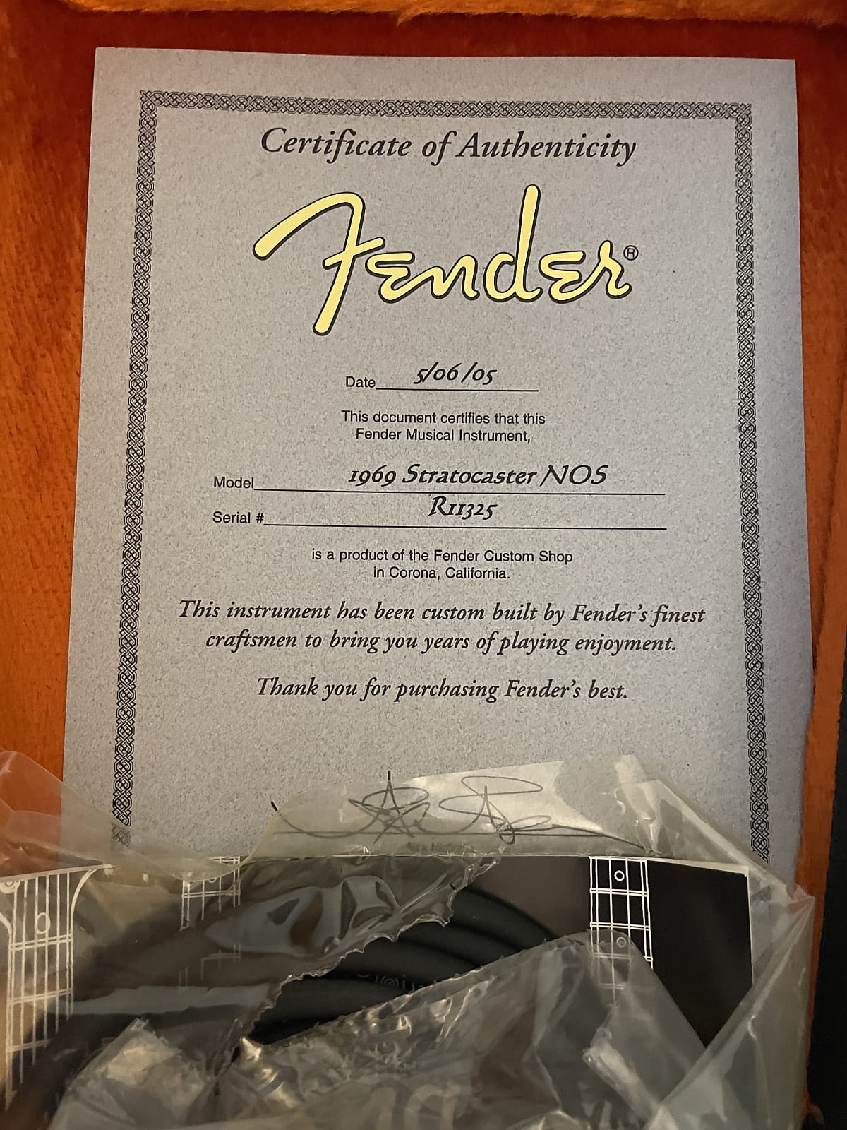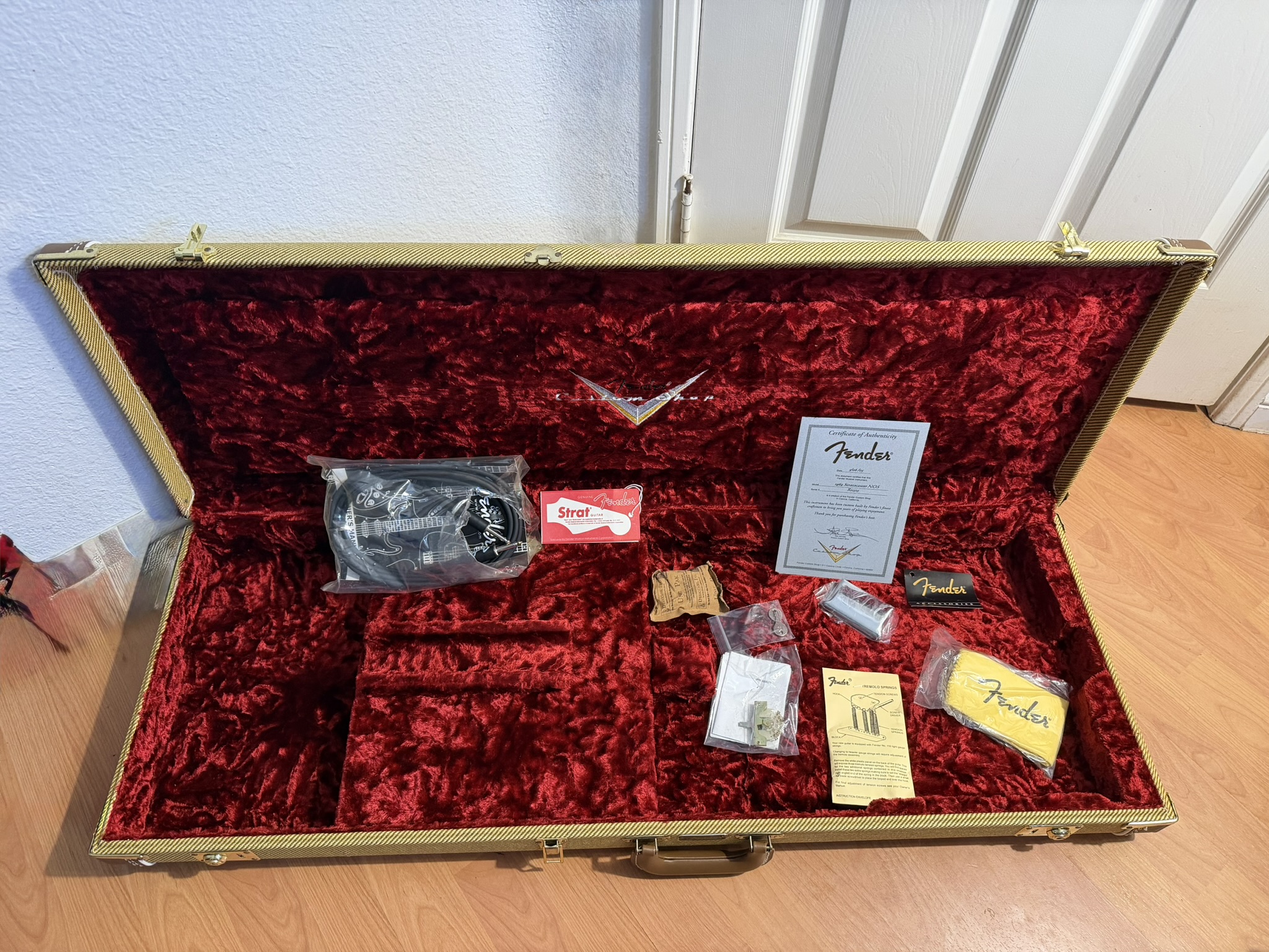 This is an upgraded Custom Shop case in brand new condition, if you want the original Black & Orange Tolex case instead of this one, please let me know. You can have one or the other.